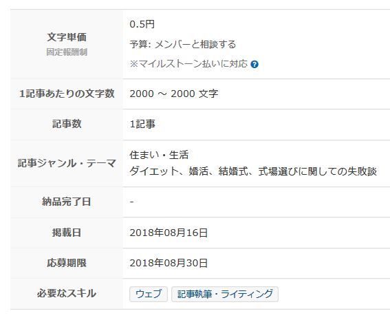よくよく依頼内容を見て頂くと1500文字からというのが解るのですが、初心者向けと言いながら3000文字以上というのが一番目に付くところにあるというのがどうだったのか?というところが気になりました….