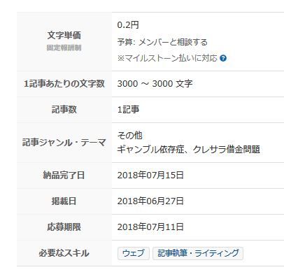 発注者の評価もなく得体のしれない人間からギャンブルや借金の記事書いてくれって言われても、「だまされるんじゃないの?」「お金貸しますよ!的なのじゃないの?」みたいなうさん臭さ..